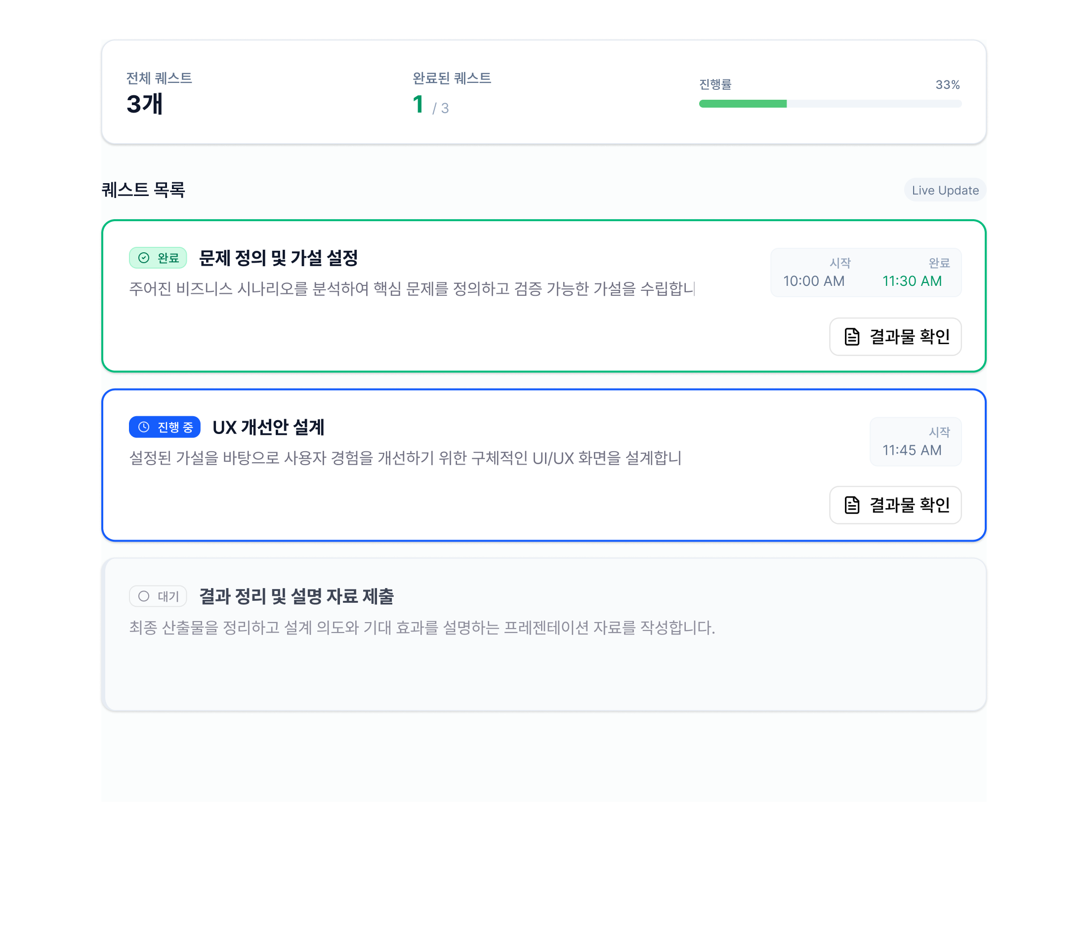 AI 기반 맞춤형 시나리오로 실전 수행력을 1주 내에 검증합니다.